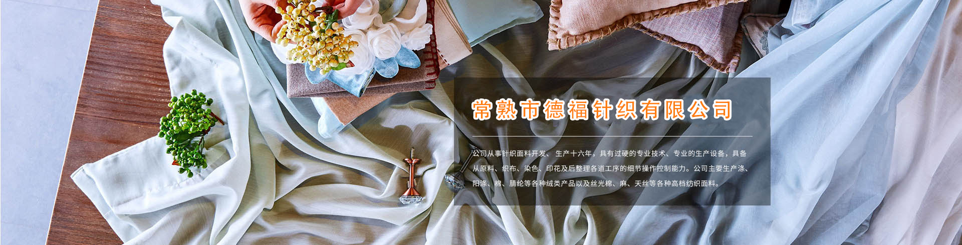 公司從事紡織面料開(kāi)發(fā)、 生產(chǎn)十六年,具有過(guò)硬的專(zhuān)業(yè)技術(shù)、專(zhuān)業(yè)的生產(chǎn)設(shè)備,具備從原料、織布、染色、印花及后整理各道工序的細(xì)節(jié)操作控制能力。公司主要生產(chǎn)滌、陽(yáng)滌、棉、腈綸等各種絨類(lèi)產(chǎn)品以及絲光棉、麻、天絲等各種高檔紡織面料。